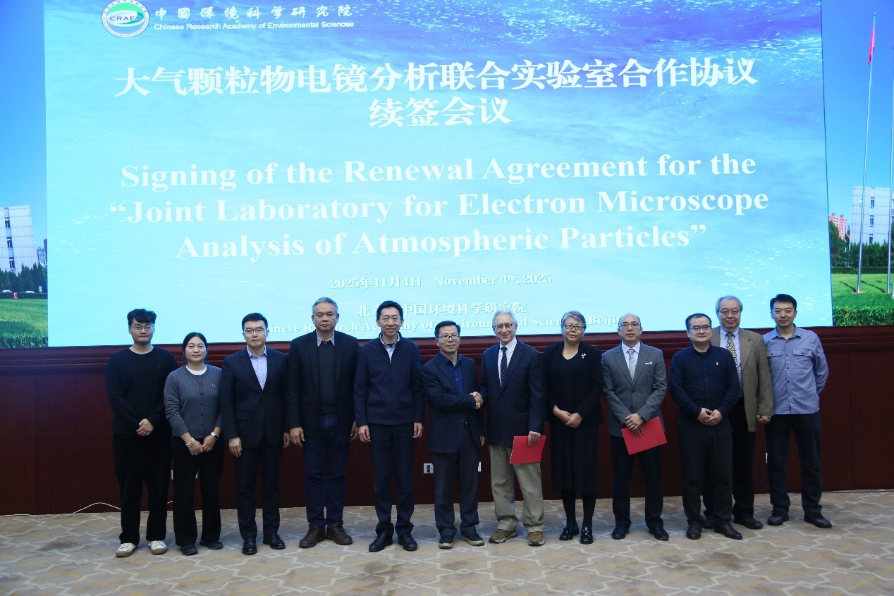 2025年11月4日,中國環(huán)境科學(xué)研究院(以下簡(jiǎn)稱(chēng)中國環(huán)科院)與美國R.J. Lee集團、北京邁特高科技術(shù)有限公司舉行“大氣顆粒物電鏡分析聯(lián)合實(shí)驗室”(以下簡(jiǎn)稱(chēng)聯(lián)合實(shí)驗室)三方合作協(xié)議續簽儀式。中國環(huán)科院副院長(cháng)陳勝,美國R.J. Lee集團副總裁Gary S. Casuccio、高級科學(xué)家李龍,北京邁特高科技術(shù)有限公司董事長(cháng)陳鋒、總經(jīng)理李江等出席簽約儀式。會(huì )議由中國環(huán)科院大氣所所長(cháng)胡京南主持。