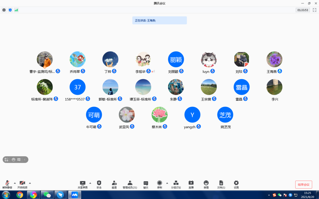8月20日下午,按照部黨組和院黨委黨史學(xué)習教育有關(guān)通知要求,標準所黨支部召開(kāi)黨史學(xué)習教育專(zhuān)題組織生活會(huì ),支部書(shū)記王海燕同志介紹了支部會(huì )前相關(guān)工作準備,包括黨史學(xué)習、方案制定、談心談話(huà)、工作總結等,并代表支委向全體黨員報告半年來(lái)黨支部工作情況特別是開(kāi)展黨史學(xué)習教育情況和支部檢視仍存在問(wèn)題情況。支部全體黨員對照四個(gè)方面情況逐一檢視問(wèn)題,開(kāi)展批評和自我批評。