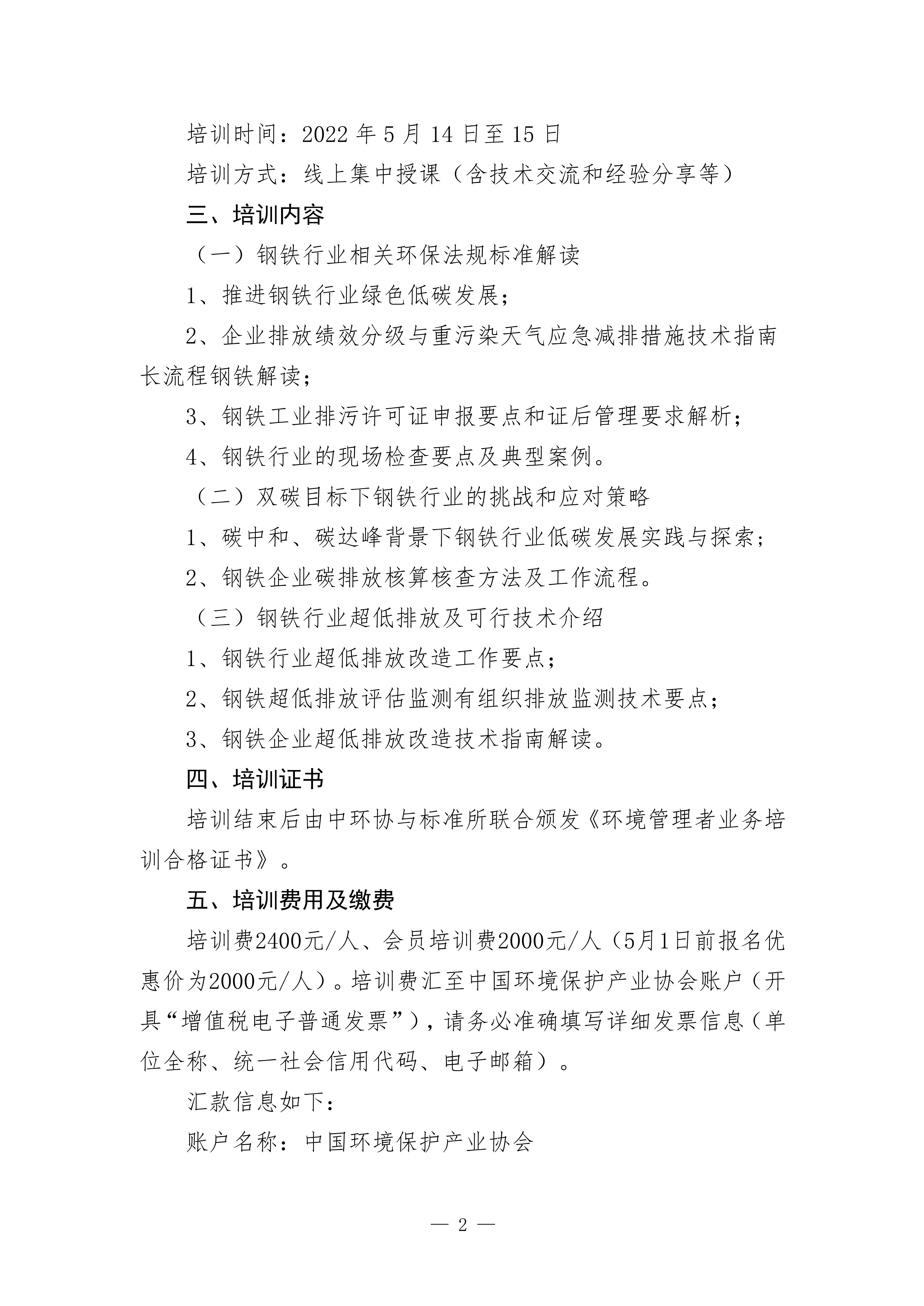關(guān)于舉辦2022年第一期鋼鐵行業(yè)環(huán)境管理能力建設培訓班的通知