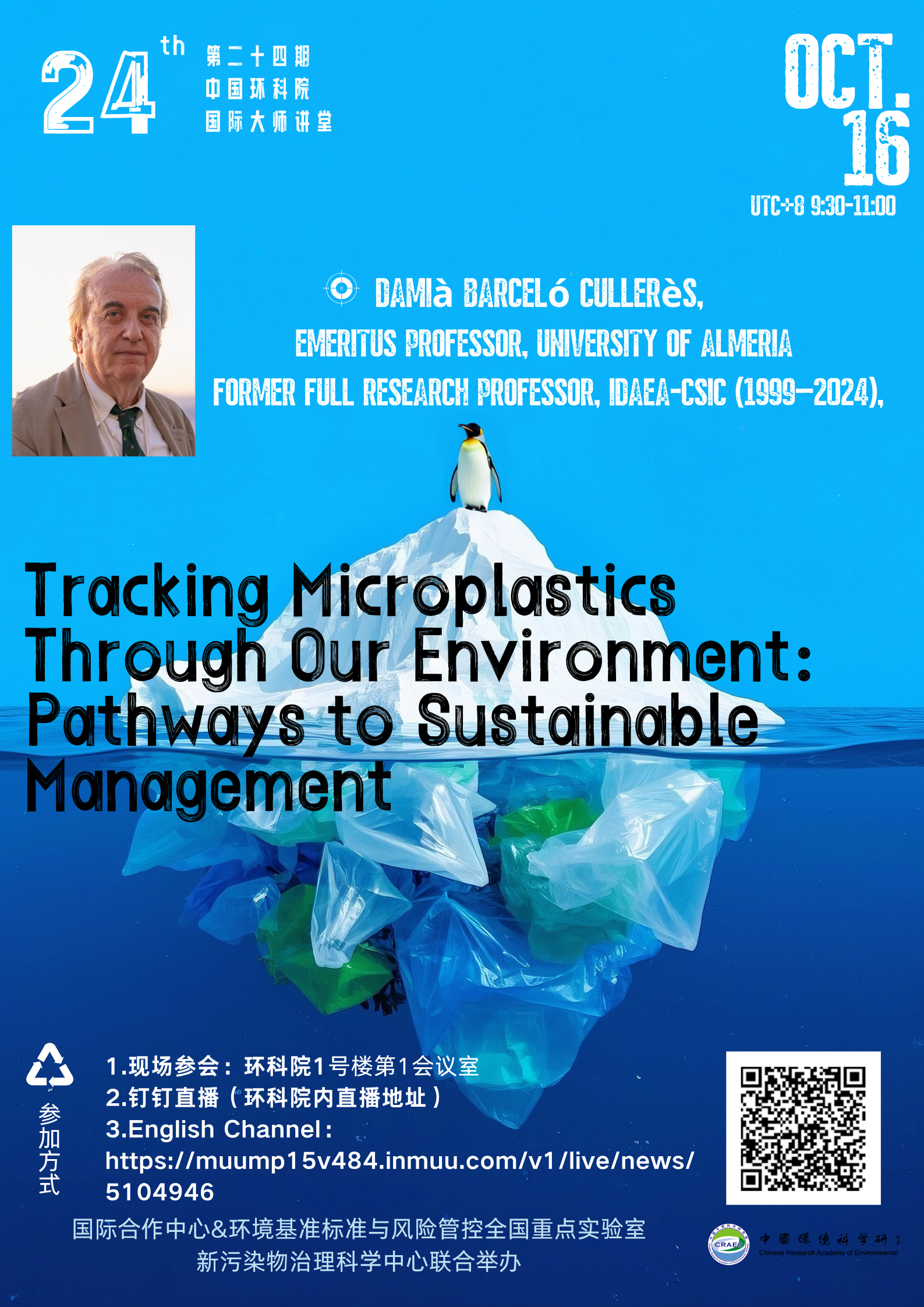 Damià Barceló Cullerès,西班牙阿爾梅里亞大學(xué)榮譽(yù)客座教授;其研究領(lǐng)域聚焦新興污染物、納米材料及微塑料在水環(huán)境中的歸宿、風(fēng)險與去除技術(shù),以及污水流行病學(xué)中的藥物與蛋白質(zhì)分析等。