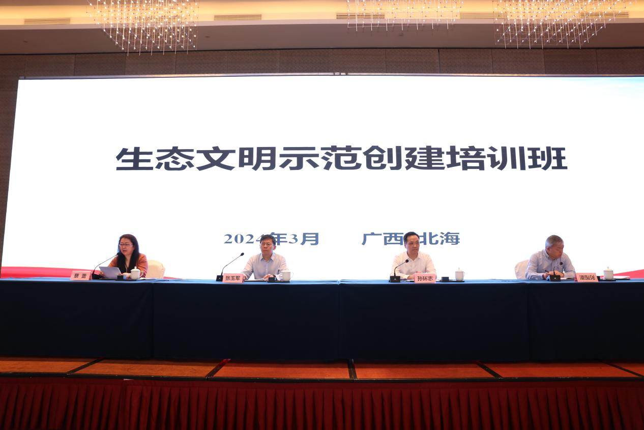 開(kāi)班儀式由生態(tài)環(huán)境部生態(tài)司副司長(cháng)蔡蕾主持。生態(tài)環(huán)境部生態(tài)司司長(cháng)張玉軍出席并發(fā)表講話(huà),廣西生態(tài)環(huán)境廳二級巡視員潘國堯、北海市副市長(cháng)孫環(huán)志出席并致辭。生態(tài)司綜合處處長(cháng)彭慧芳主持專(zhuān)家解讀和交流討論環(huán)節,并介紹生態(tài)文明示范創(chuàng )建工作要點(diǎn)。